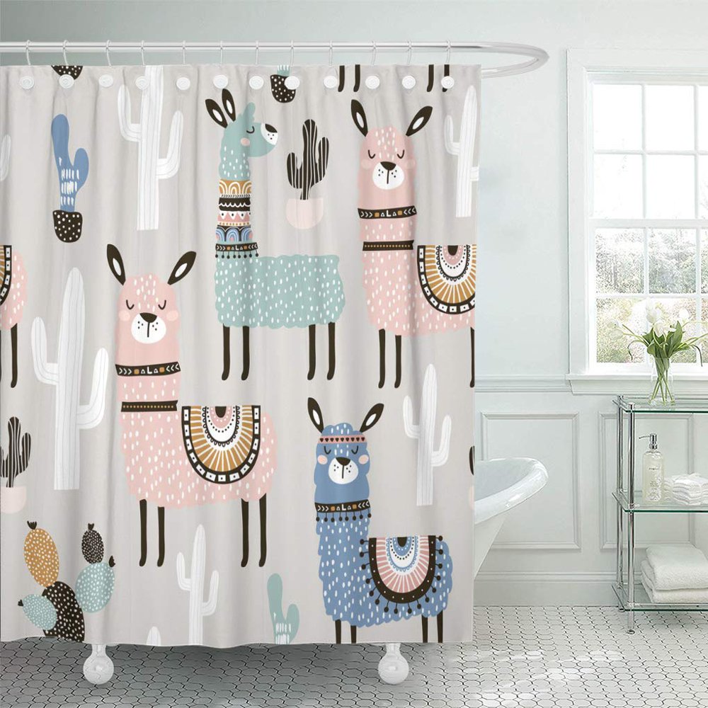 See more ideas about cactus shower curtain, cactus decor, cactus. Cartoon cactus llama shower curtain bath mat toilet cover rug bathroom decor. Seamless pattern llama cactus and elements creative childish texture shower curtain 66x72inch/165x180cm. This standard size shower curtain is made of waterproof fabric with 12 button holes for easy hanging, and it creates just the energy you'd expect from adorable. Free shipping on your first order shipped by amazon.