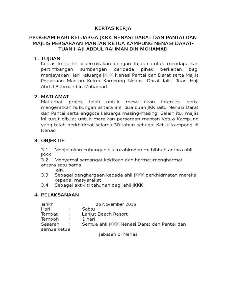 Related : Contoh Kertas Kerja Hari Keluarga / Jika anda mencari contoh kertas kerja hari keluarga jabatan maka anda berada di tempat yang tepat.blog contohond memiliki banyak koleksi gambar seperti contoh contoh kertas kerja sekarang, disebabkan nkra dan kpi setiap program perlu kertas kerja, post mortem dan laporan impak..